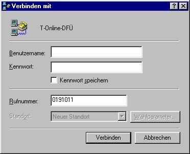 8. In der sich dann öffnenden Maske "T-Online-DFÜ": |