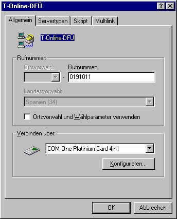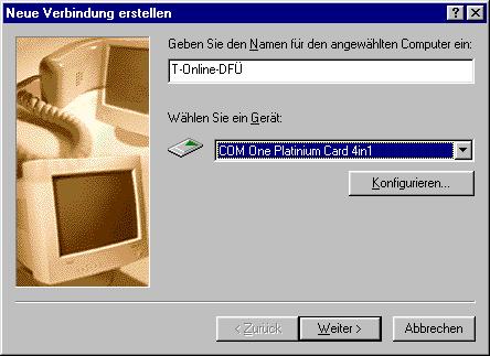 4. In der sich dann öffnenden Maske: Geben Sie als Namen z.B. "T-Online-DFÜ" ein