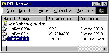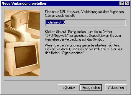 9. Starten Sie dann im Fenster "DFÜ-Netzwerk" die neu angelegte Verbindung mit Doppelklick auf "T-Online-DFÜ". |